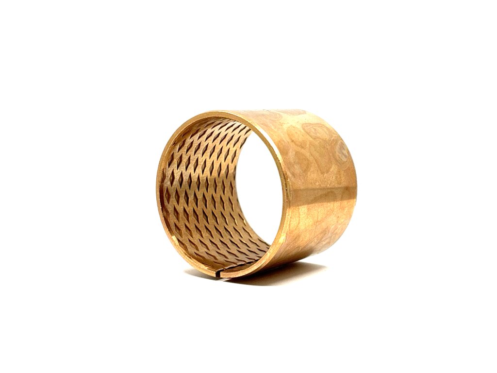 Celobronzová pouzdra z tenkého slinutého bronzového pásu, z materiálu CuSn8, určené pro mazání tuhým nebo plastickým mazivem.