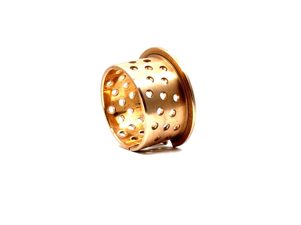 Celobronzová pouzdra z tenkého slinutého bronzového pásu, z materiálu CuSn8, určené pro mazání tuhým nebo plastickým mazivem.